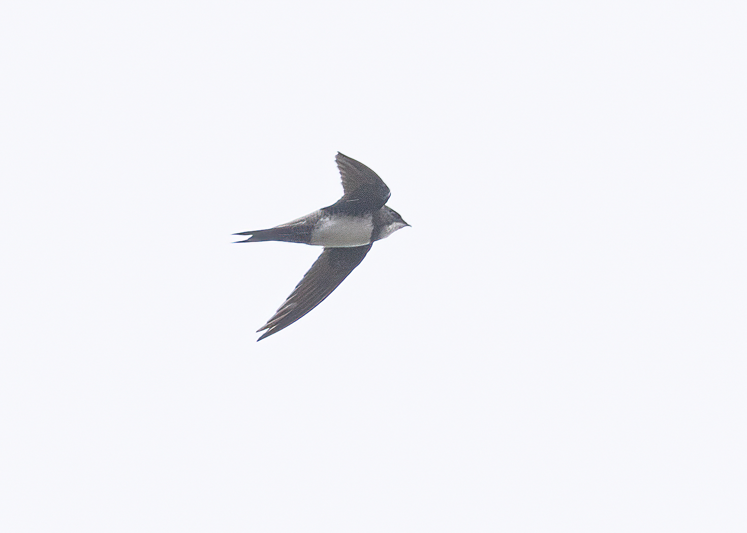 The power station at Oldbury is an old style Magnox nuclear reactor located next to the sea which provides the necessary copious cooling water. Power stations typically generate a microclimate warmer than surrounding areas and the resulting insect population was presumably the attraction to the Swift. The promised light rain was steadily falling and, while this made anything other than record shots problematic for photography, it did have the advantage of pushing the insects lower giving us some great views of the Swift flying low over the car park. In flight it had the typical jet like agility of a hirundine gliding effortlessly on the wind with little or no need to flap its wings. Overhead the distinctive white belly was very obvious although it was hard to get a true measure of its overall size without anything to compare it to.