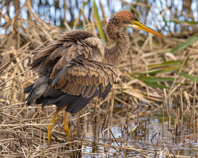 The Purple Heron sits in the well populated category on my UK bird list, seen badly on numerous occasions. All the ones I have seen in the UK have been very skittish, unapproachable, and easily flushed. We had one at Otmoor RSPB for a few weeks back in the summer of 2016 but, despite a number of visits, I only ever had frustratingly brief flight views. So when pictures started to emerge of a seemingly very confiding individual only 40 odd miles from home at Whelford a visit was a no-brainer.